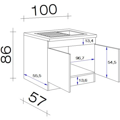 Der 100 cm breite Spülen-Unterschrank ist neben einer Einbauspüle, mit einer Arbeitsplatte sowie mit zwei Drehtüren ausgestattet und weiß durch eine hochwertige Verarbeitung sowie Materialauswahl zu gefallen.