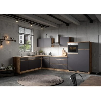 Mit dem Küchen-Eckschrank Turin von Held Möbel mit hochwertigen MDF-Fronten können Sie ihre Küchenzeile perfekt ergänzen. Hinter der Drehtür befinden sich zwei Ablagefächer. Optisch begeistert der Schrank durch die klaren Linien sowie die zweifarbige Gestaltung. Da der Schrank in zwei Farbkombinationen verfügbar ist, können Sie die Küche im Mix-and-Match Stil einrichten.