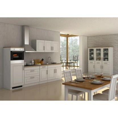 Die Küchenzeile Rom von Held Möbel mit hochwertigen MDF-Fronten im Landhaus-Stil begeistert durch ihr zeitloses Design und viel Stauraum auch in beengten Wohnverhältnissen. Durch die autarken E-Geräte ist eine individuelle Ausrichtung der Küche möglich und selbstverständlich erweiterbar durch die weiteren Produkte der Serie Rom.