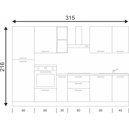Die Cleopatra 315 cm Küchenzeile besteht aus (B x H x T):