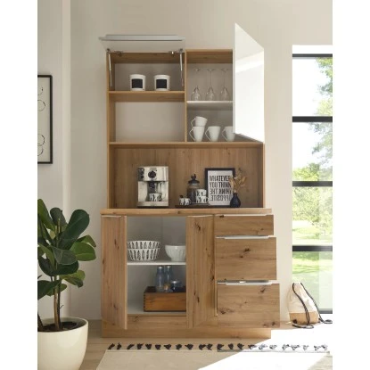 Das Respekta Buffet zu Küchenzeile Marleen ist in verschiedenen Farben erhältlich und schafft durch den Materialmix von Elementen in Holz- und Griffleisten in Aluminiumoptik ein modernes Design. Die Schränke bieten Ihnen viel Stauraum und schließen dank der Soft Close Funktion besonders geräuscharm. Unebenheiten im Boden gleichen Sie mit den höhenverstellbaren Füßen ganz einfach aus.