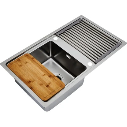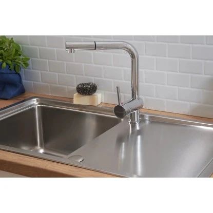 + Edelstahlspüle mit 1 Becken und Abtropffläche