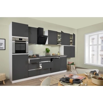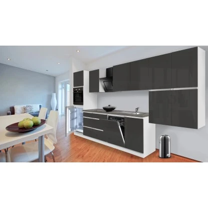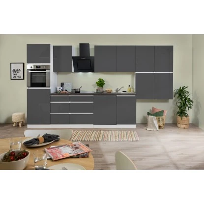 Respekta Küchenzeile GLRP380HWG Grifflos 380 Cm Grau Hochglanz-Weiß