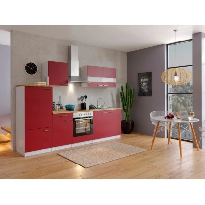 Ein funktioneller Küchenblock mit bereits integrierten Elektroeinbaugeräten. Der Küchenblock weiß mit einem zeitlosen Design und einer aktuellen Farbkombination zu gefallen. Dank der hochwertigen Ausstattung, ist Ihnen ein hohes Maß an Komfort garantiert. Als besonderes Extra sind alle Scharniere mit der komfortablen Soft-Close Funktion ausgestattet. Der Küchenblock verfügt über eine Gesamtbreite von 270 cm und lässt sich ganz nach Ihren Wünschen wechselseitig aufbauen. Alle Holzteile sind zerlegt und eignen sich dank einer detaillierten Aufbauanleitung zur einfachen Selbstmontage.