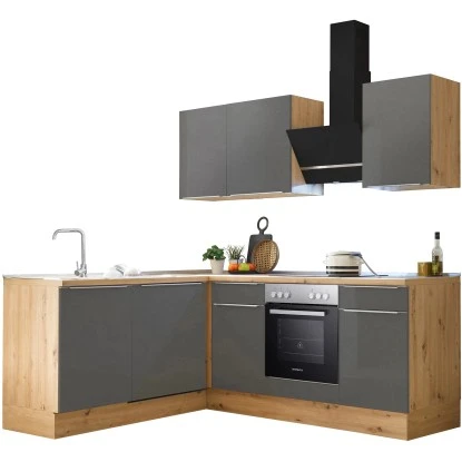 Die Respekta Küchenzeile Marleen ist in verschiedenen Farben erhältlich und schafft durch den Materialmix von Elementen in Holz- und Griffleisten in Aluminiumoptik ein modernes Design. Die Schränke bieten Ihnen viel Stauraum und schließen dank der Soft Close Funktion besonders geräuscharm. Unebenheiten im Boden gleichen Sie mit den höhenverstellbaren Füßen ganz einfach aus.