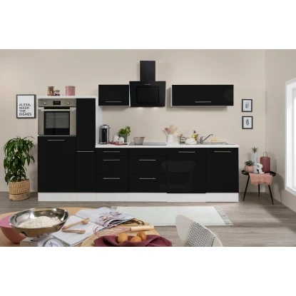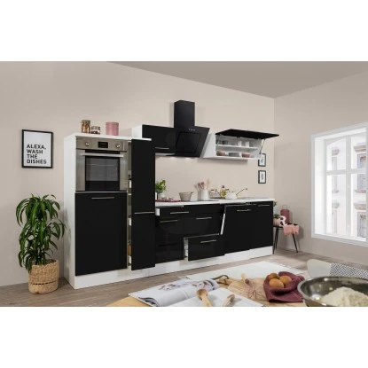 Respekta Premium Küchenzeile 310 Cm Hochbau Schwarz Hochglanz-Weiß