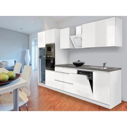 Respekta Premium Küchenzeile GLRP345HWWGKE 345 Cm Weiß Hochglanz