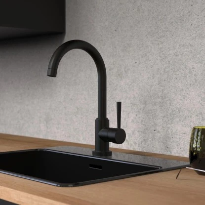 Die Schütte Design-Spültischarmatur Cornwall Schwarz-Matt ist mit hohem Rundbogenauslauf und 360° Schwenkbereich für einen komfortablen Aktionsradius ausgestattet. Die komfortable Einhand-Bedienung sorgt für mehr Bewegungsfreiheit im Spülbereich. Die Hochdruck-Armatur Cornwall verfügt über einen Kalt- und einen Warmwasseranschluss (zwei Flexschläuche im Lieferumfang). Die geräuscharme, auswechselbare Kartusche mit langlebigen keramischen Dichtungen sorgen für präzise Regelung der Durchflussmenge und Wassertemperatur. Entspricht den Bestimmungen der deutschen Trinkwasserverordnung. Alle Komponenten mit Wasserkontakt sind KTW und W270 geprüft. Vollständiges Montageset und eine leicht verständliche Montageanleitung machen die Installation zum Kinderspiel. Strenge Qualitätskontrollen und hochwertige Materialien gewährleisten hohe Sicherheit und beste Wasserqualität. Zudem ist eine vergleichbare Armatur von Stiftung Warentest Ausgabe 08/2021 mit der Note 2,0 ausgezeichnet worden.